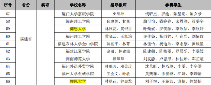 福建省选拔赛获奖名单(节选)