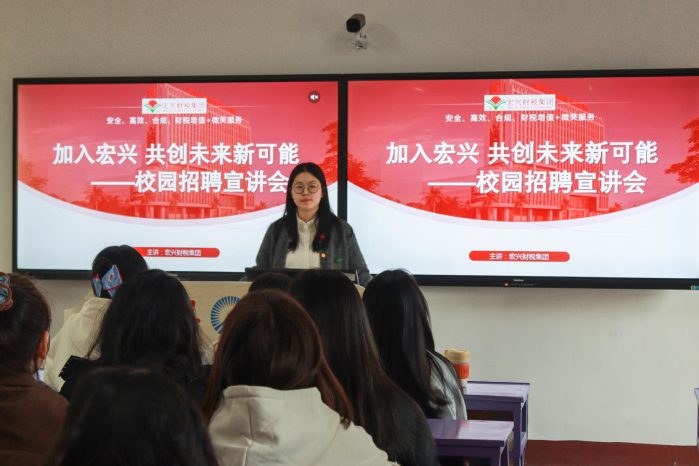 为拓宽毕业生就业渠道、提升就业质量,11月27日,388vip太阳集团于吉龙楼405教室举办宏兴集团校园招聘宣讲会,会计学、财务管理专业毕业生参会。